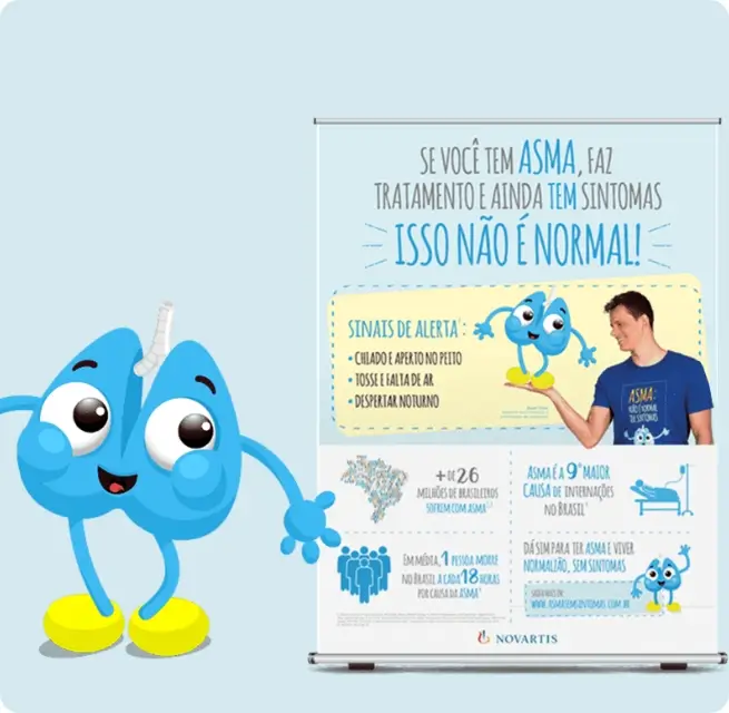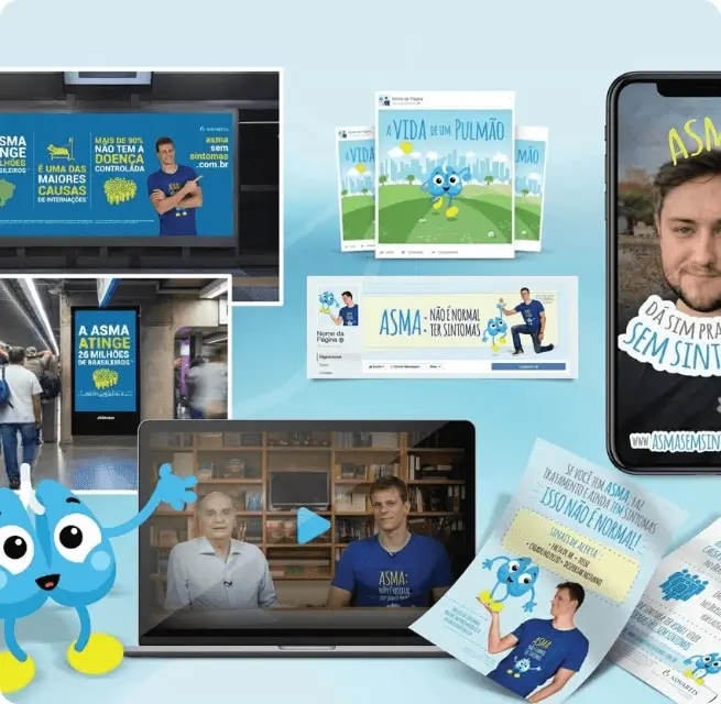 A campanha contou com a participação do Dr. Drauzio Varela e do ex-nadador Cesar Cielo, que tem asma e pôde contar toda sua trajetória com a doença. Além disso, criamos o mascote oficial presente em diversas ações, como na criação de filtro especial para o Instagram.