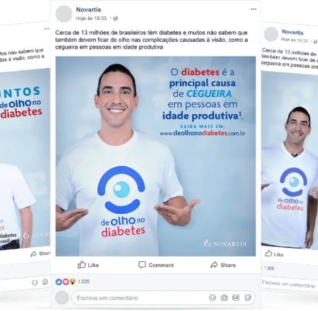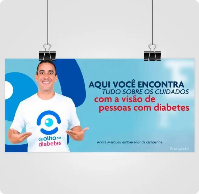 Cerca de 13 milhões de brasileiros têm diabetes e o desafio foi comunicar que todos os diabéticos também devem ficar de olho nas complicações causadas à visão. A campanha contou com a participação do ator André Marques e com o apoio de ONGs e outros influenciadores com diabetes, ou que convivem com pessoas com a doença.