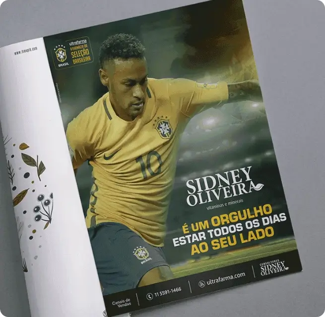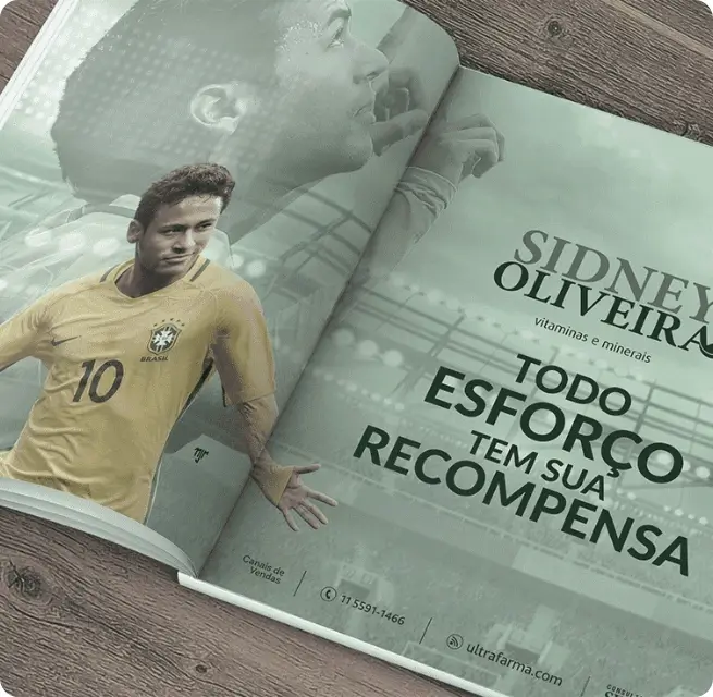 Participamos da criação da campanha das vitaminas Sidney Oliveira e da Ultrafarma, patrocinadora oficial da seleção brasileira, seguindo o conceito “Tá no coração de todo brasileiro”, em alusão à presença da seleção na Copa e marca registrada do Sidney Oliveira, de utilizar as mãos sempre próximas ao peito. A campanha contou com a presença do Neymar Jr., com o uso da imagem nas embalagens, comerciais de TV, anúncios em revistas, merchandising e mídia de performance.